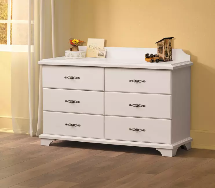 Корпуса и фасады изготавливаются из массива сосны, задние стенки изделий и донья ящиков из окрашенной ДВП. Ящики устанавливаются на шариковых направляющих скрытого монтажа, с полным выдвижением и с доводчиками для плавного закрывания. Доводчиками оснащены и дверные петли.