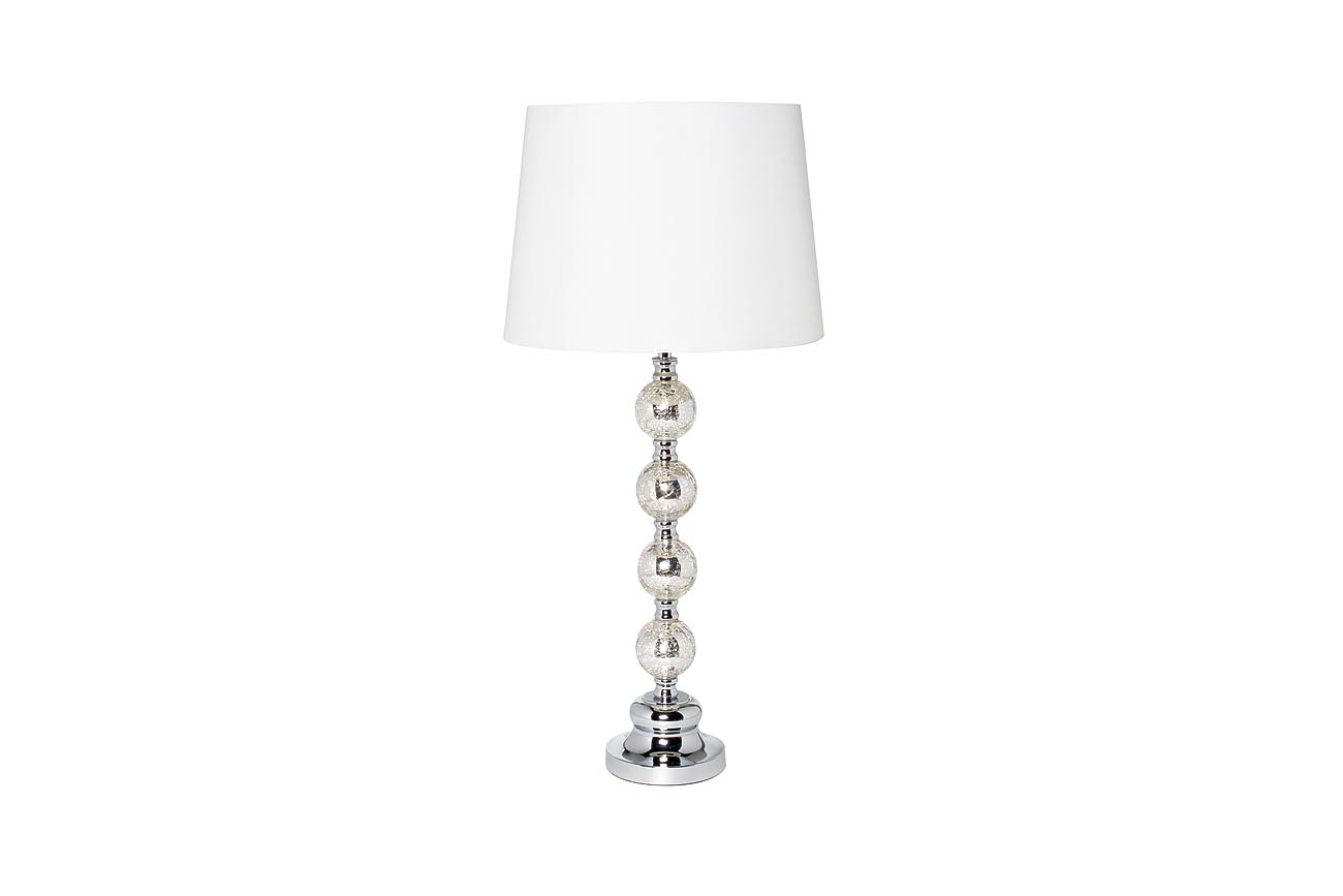 - Материал: Основание - металл никелированный, ножка стеклянная; плафон - ткань белая