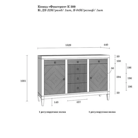 Комод Фокстрот 326C (дуб натуральный/бетон/дуб натуральный). Комод оснащен ящиками и распашными дверками с полками внутри. Фурнитура на дверях и ящиках с доводчиками. Высокие ножки обеспечивают оптимальный доступ при уборке. Особенности Размеры 1529 x 1001 x 440 мм; Из массива и шпона дуба; Современная надежная фурнитура из Германии; Изделие представлено в цвете “дуб натуральный/бетон/дуб натуральный”. Направляющие - GTV скрытого монтажа со встроенным демпфером (доводчиком для плавного закрывания) Петли-GTV Ручки - Citterio Line (Италия) в стиле модерн, имеют форму квадрата, металл, цвет графит; Особенности покрытия Поверхности изделия обработаны лаками и красками, которые выгодно подчеркивают естественную красоту натуральной древесины. Таким образом обеспечивается защита от излишней влаги, появления плесени и грибков.