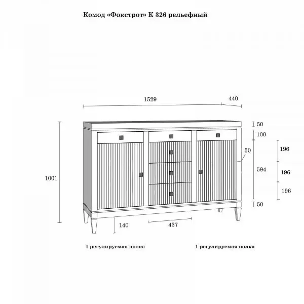 Ш 1529 x Гл 440 x В 1001
