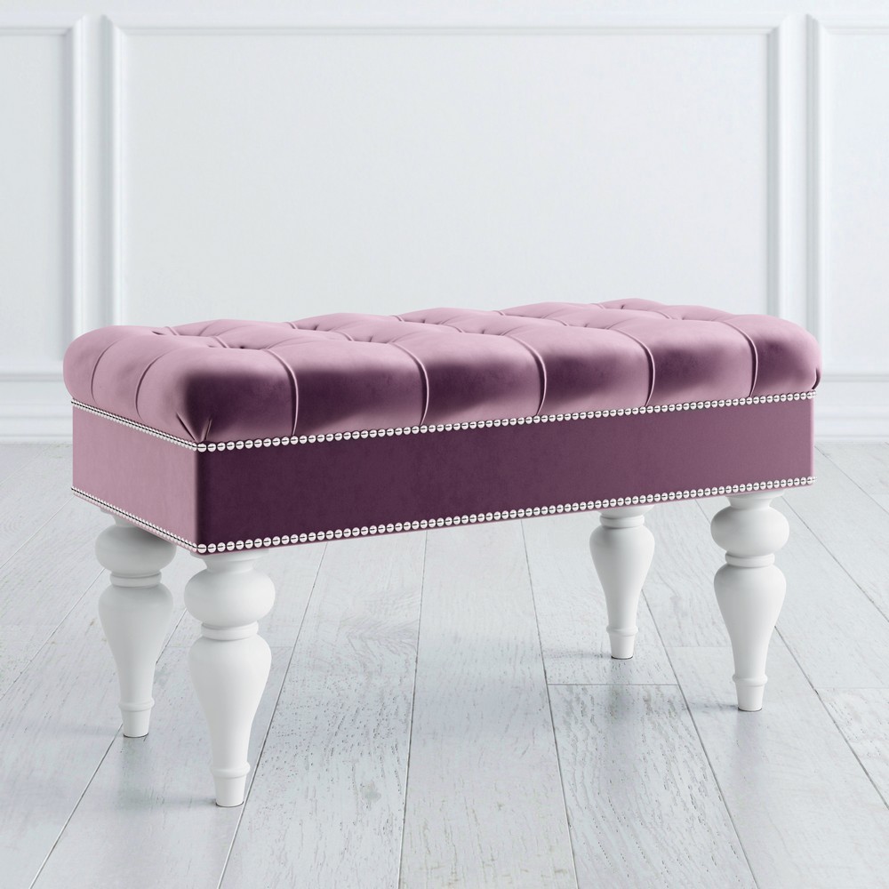Изысканная банкетка декорирована современным микровельветом. Эффектный фиолетовый оттенок органично сочетается со светлыми резными ножками. Мягкое сиденье украшает нарядная каретная стяжка. Внутренний отсек предназначен для хранения объемных предметов. Классический дизайн используют для обустройства стилей ампир, арт-деко или шебби-шик. Сборка не требуется.