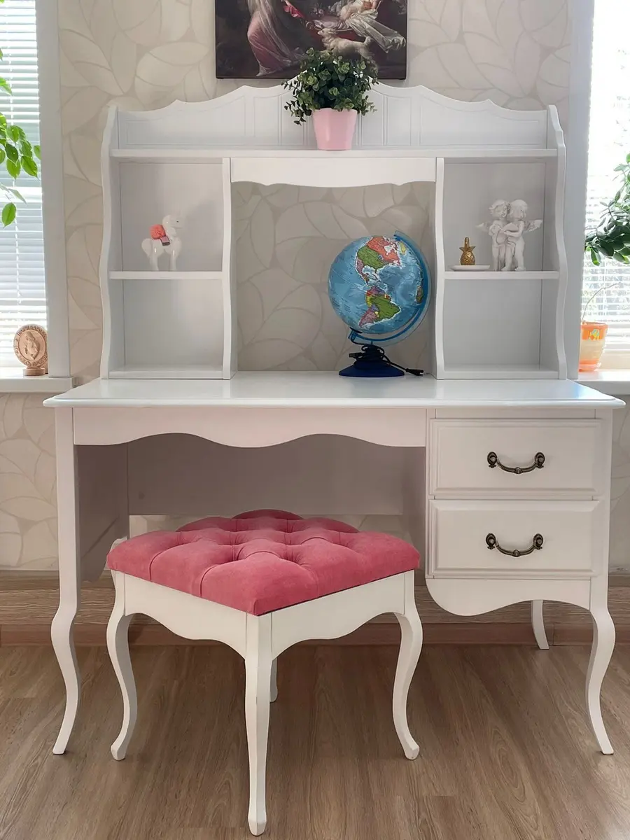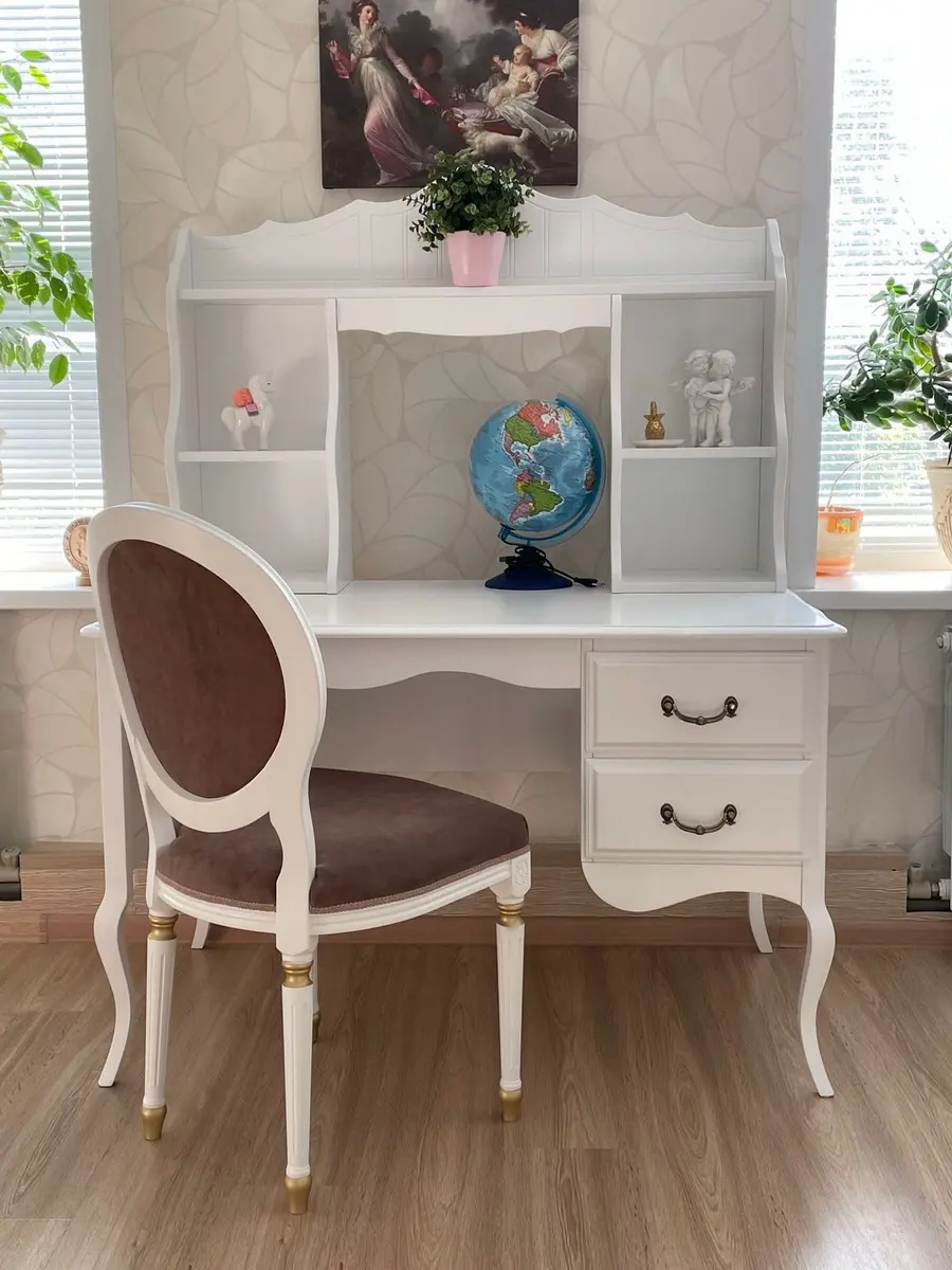 Стол смотрится воздушным и лёгким из-за высоких резных ног и плавных линий.