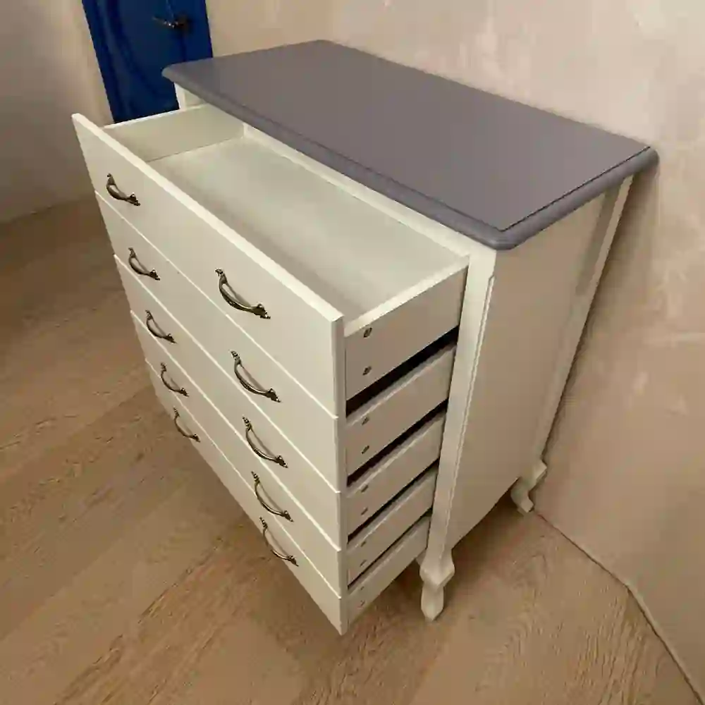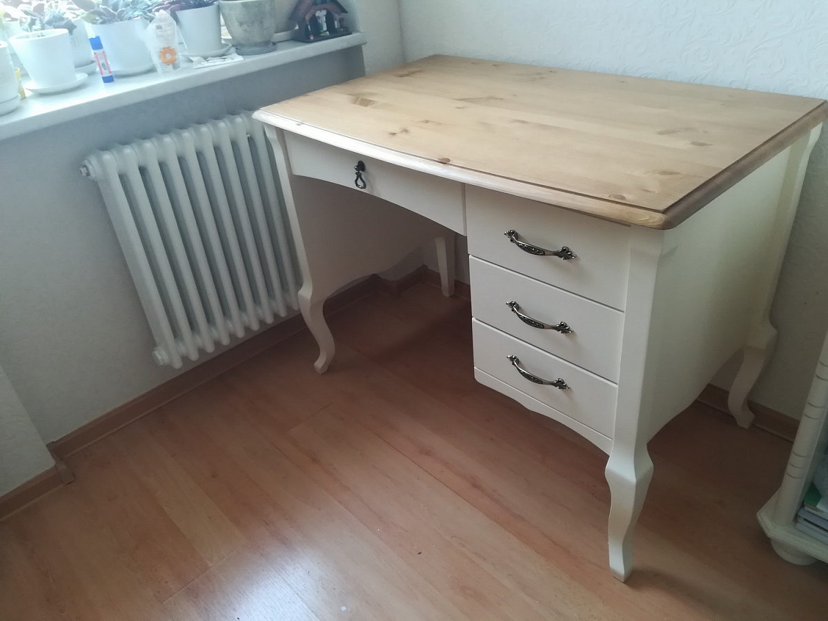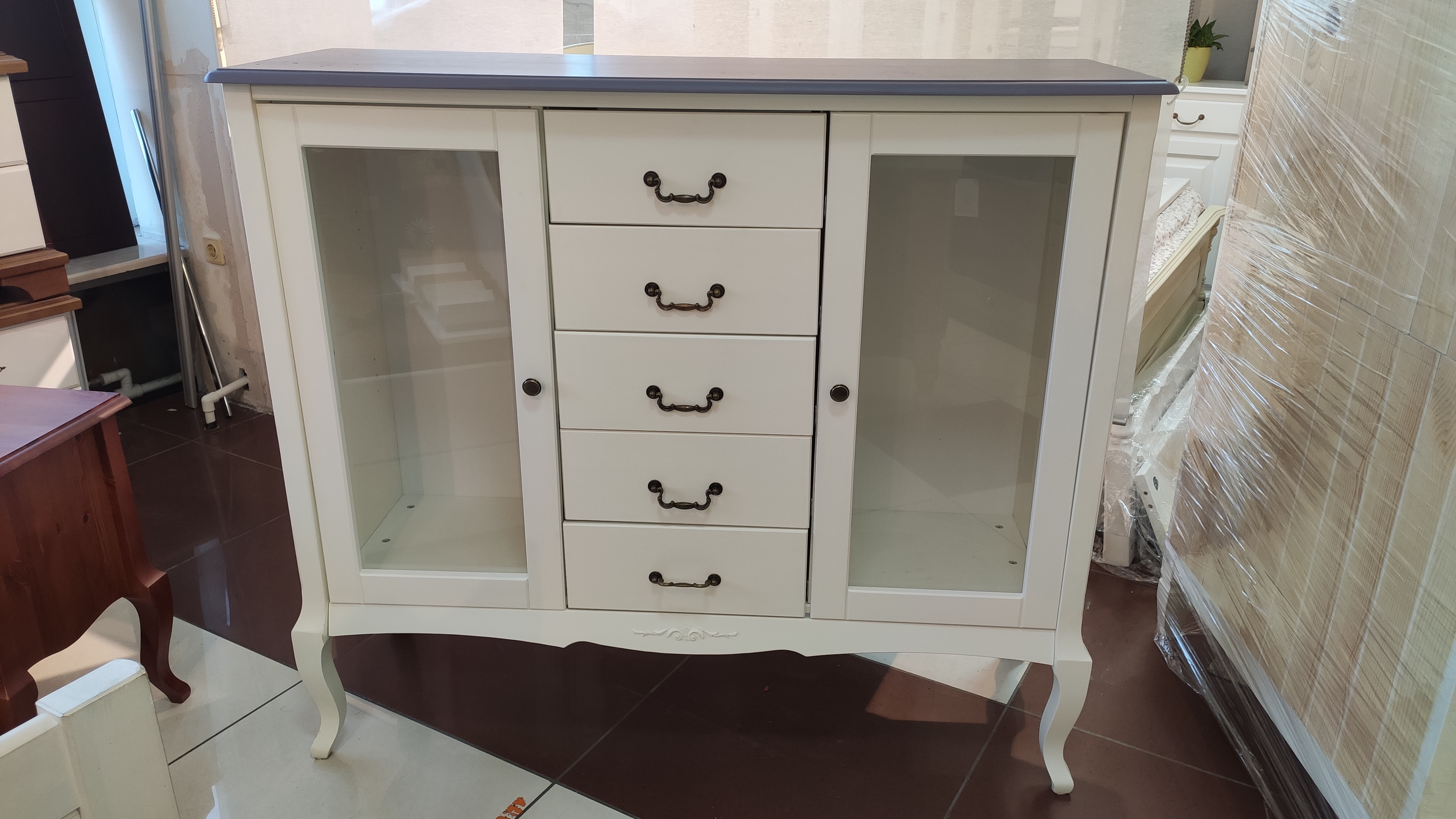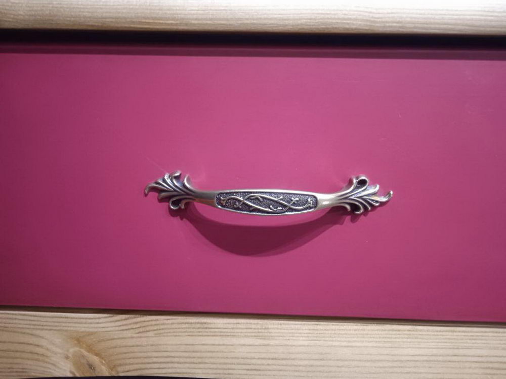На дверцах и ящиках могут быть металлические ручки-скобы, ручки-капли или кнопки с эффектом старения. Ручки в комплекте могут отличаться от изображенных на фотографиях товаров: уточняйте при заказе, какая фурнитура будет у вашей мебели. Нижняя планка по вашему желанию может быть украшена изящной виньеткой.
