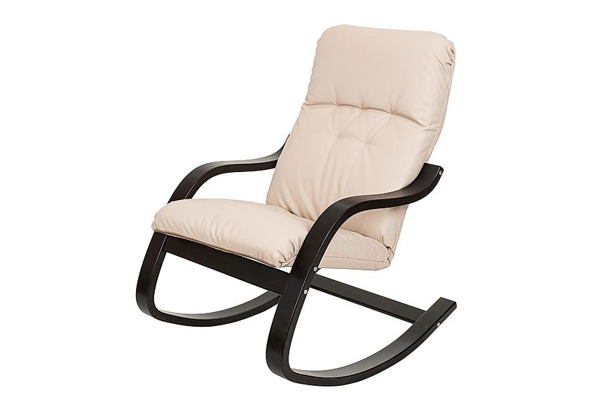 Кресло-качалка с обивкой из экокожи цвета Бежевый и каркасом цвета Венге