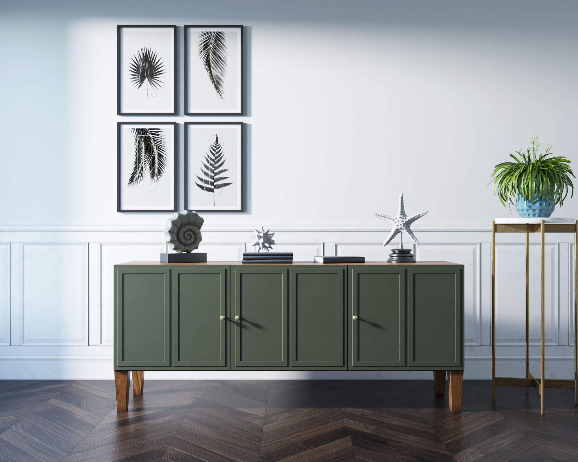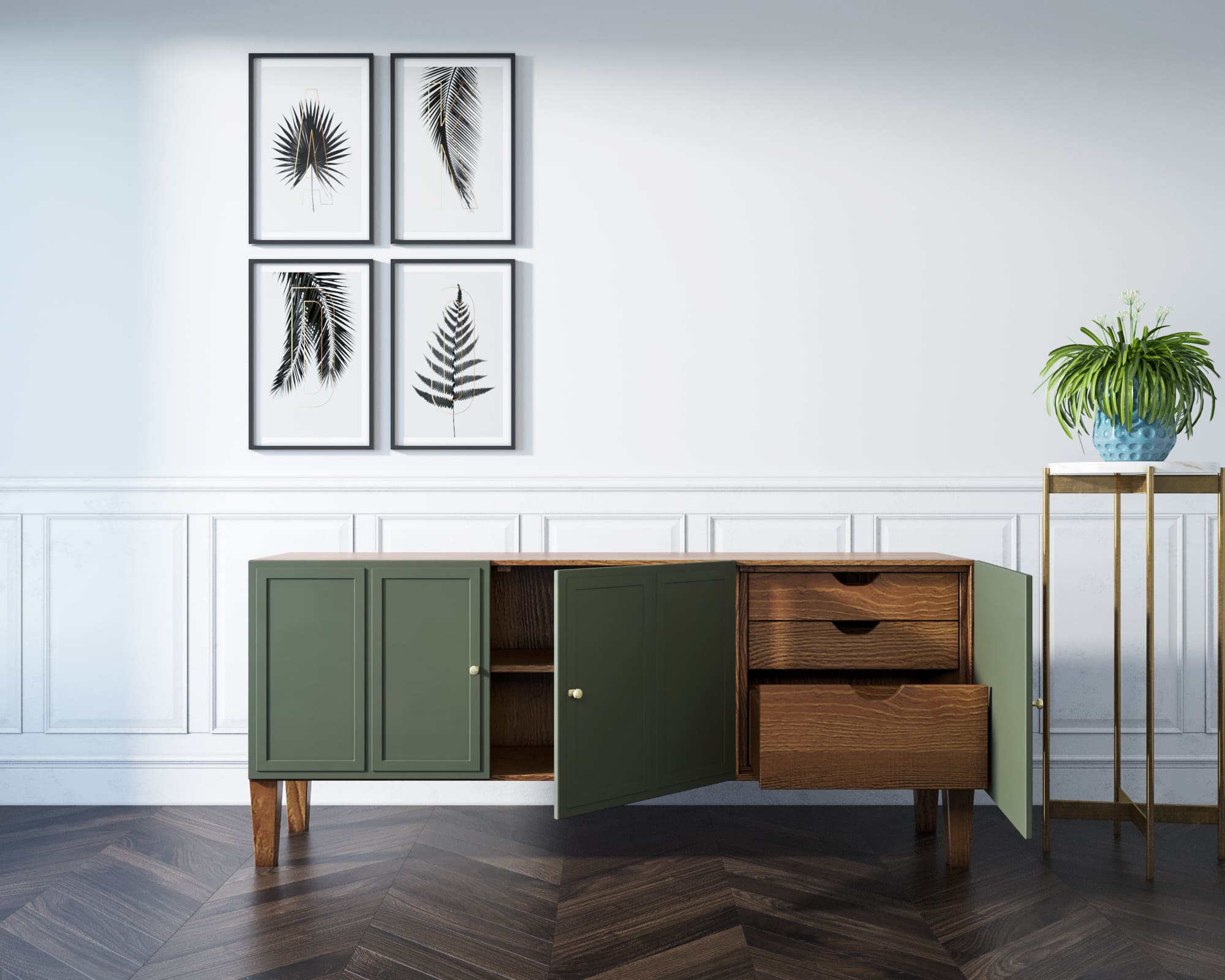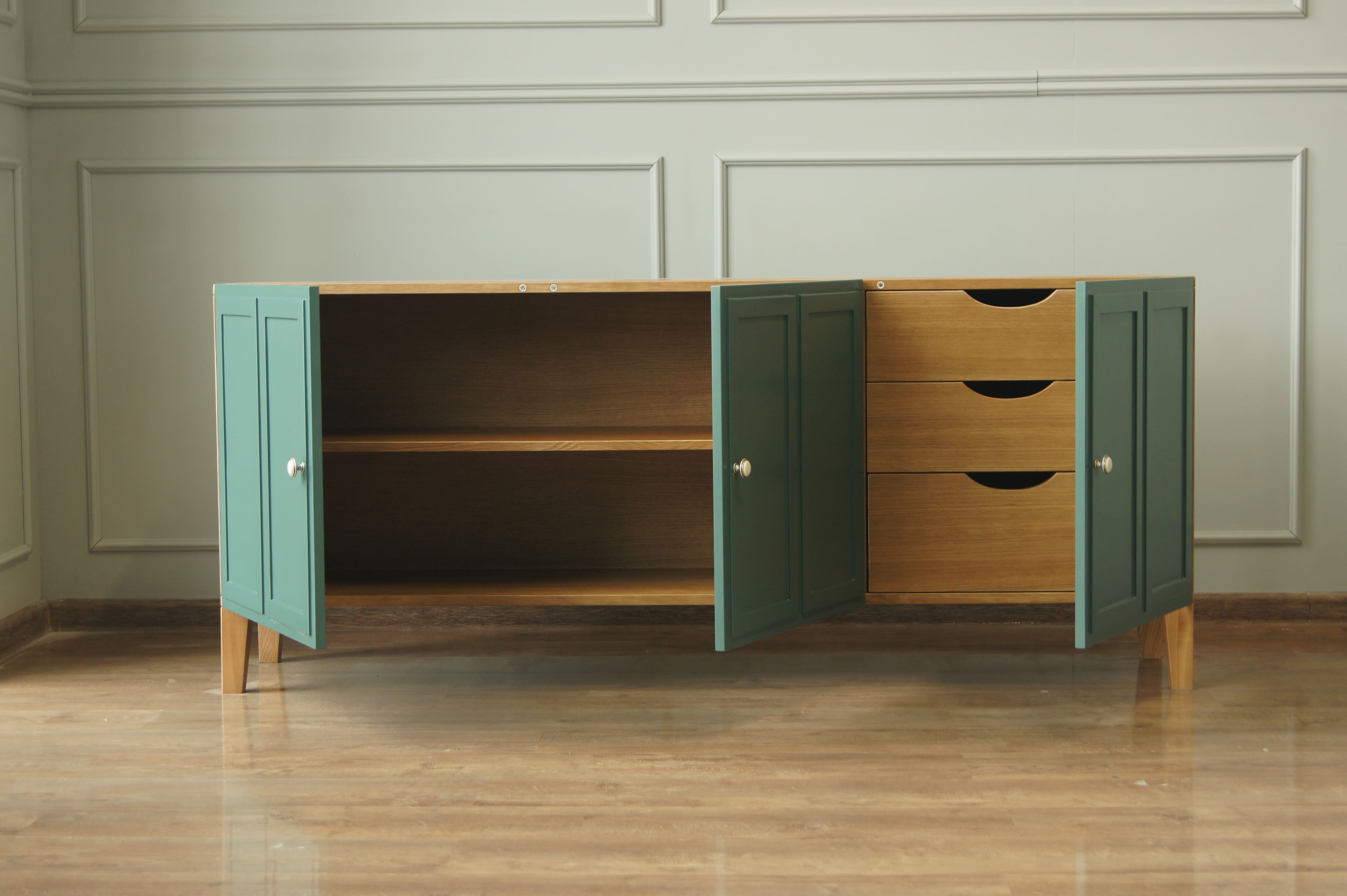 Внутреннее наполнение: 3 ящика на направляющих с доводчиками, 1 полка, 3 двери.
