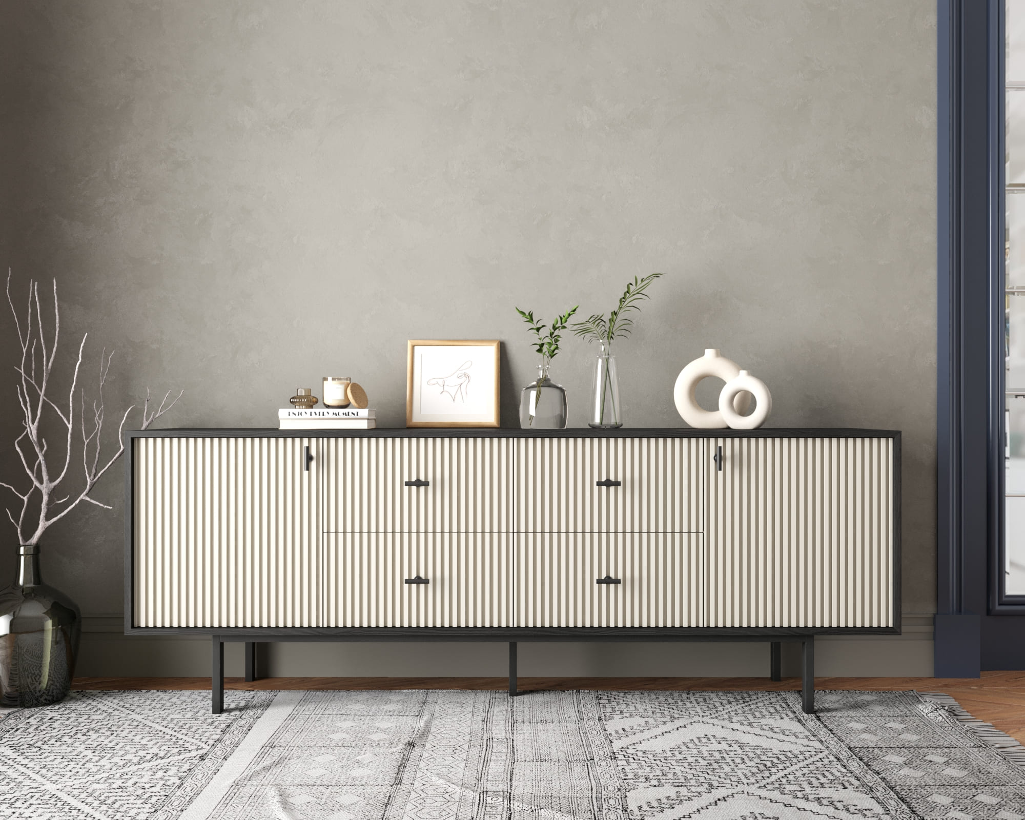Комод две дверки и четыре ящика "Emerson" арт EM19/milky/L