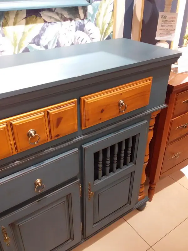 Материал - сосна, задняя стенка, дно ящиков - ДВП белого цвета, вставки в боковинах (филенка) - фанера (6 мм).