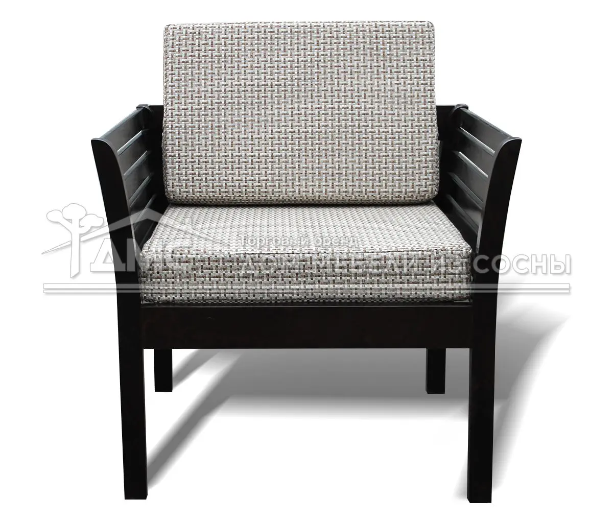 Кресло изготовлено из прочного дерева, что гарантирует его долговечность и надёжность. Высокие ножки перерастают в основу для боковых ручек, состоящих из рамы и шести створок. Две мягкие квадратные подушки служат в качестве сиденья и спинки изделия. Они обиты качественной тканью, лёгкой в уходе.