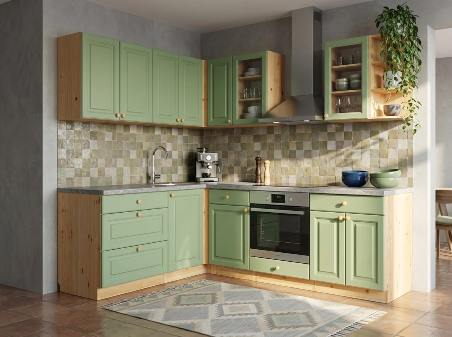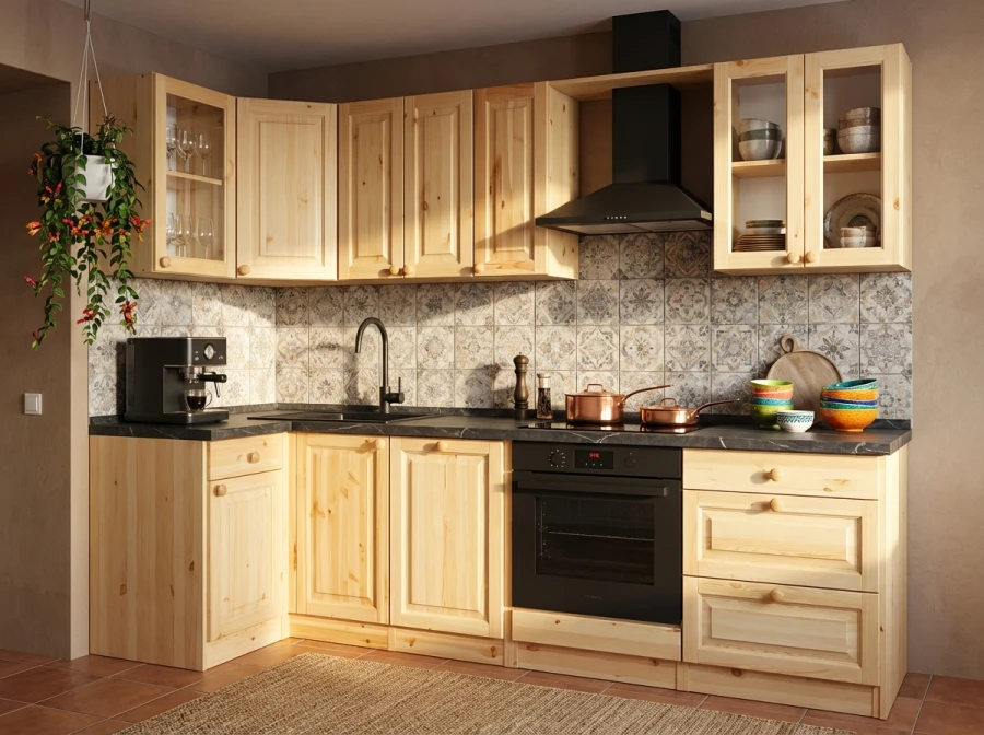 Полка подходит для хранения небольших кухонных предметов или посуды. Можно собрать левый либо правый вариант. Тумба изготовлена из высококачественного мебельного щита толщиной 20 мм, прочного и долговечного. Отделка УФ-лаком от крупного производителя лаков и красок The Sherwin-Williams Company.