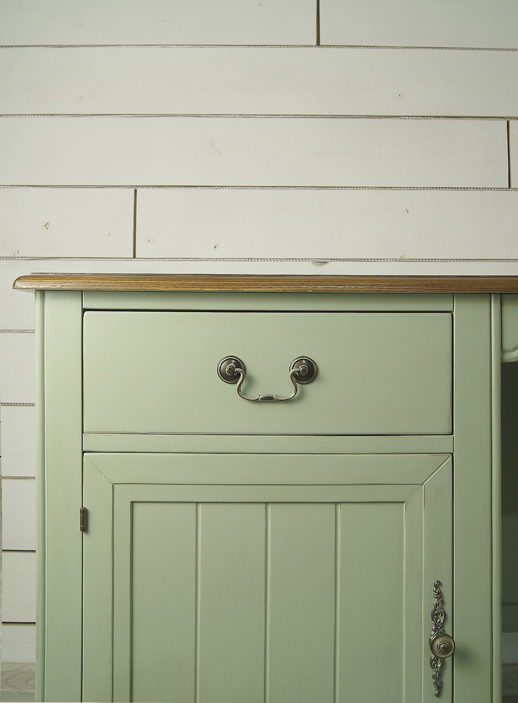Приятный оливковый цвет, фрезеровка на дверке, кованые ручки