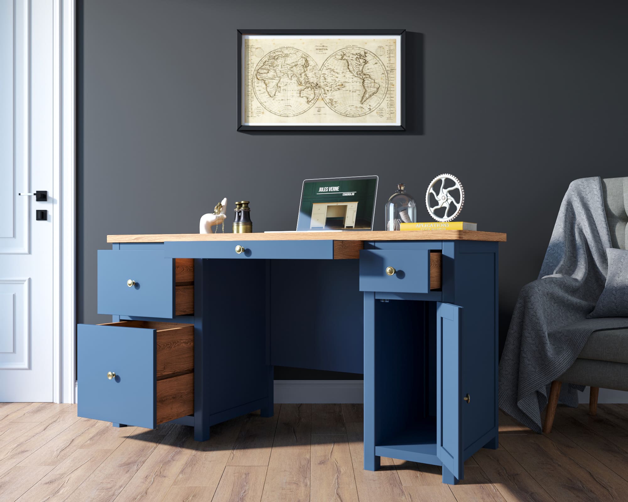 Основательный и практичный рабочий стол "Jules Verne" сочетает в себе все эти характеристики.