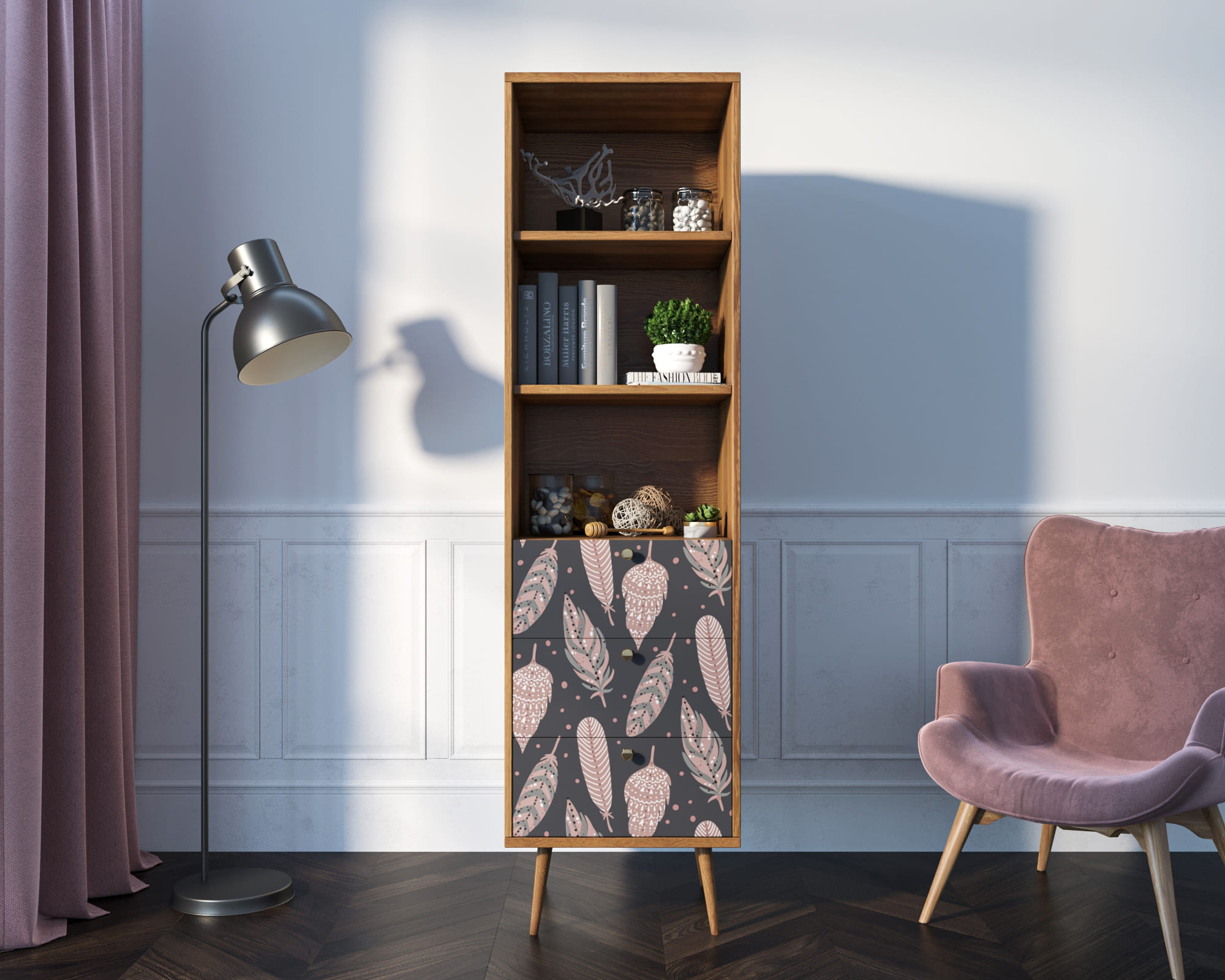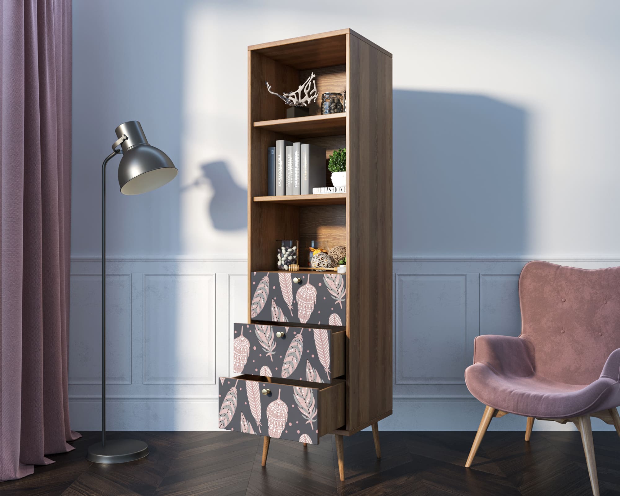 Корпус и ящики изготавливаются из ЛДСП австрийской компании "EGGER". Ножки мы делаем из массива ясеня и крепим на стальную пластину, на дверях петли с доводчиком а на ящиках шариковые направляющие. Принт на фасады наносится принтером специальными УФ - чернилами.