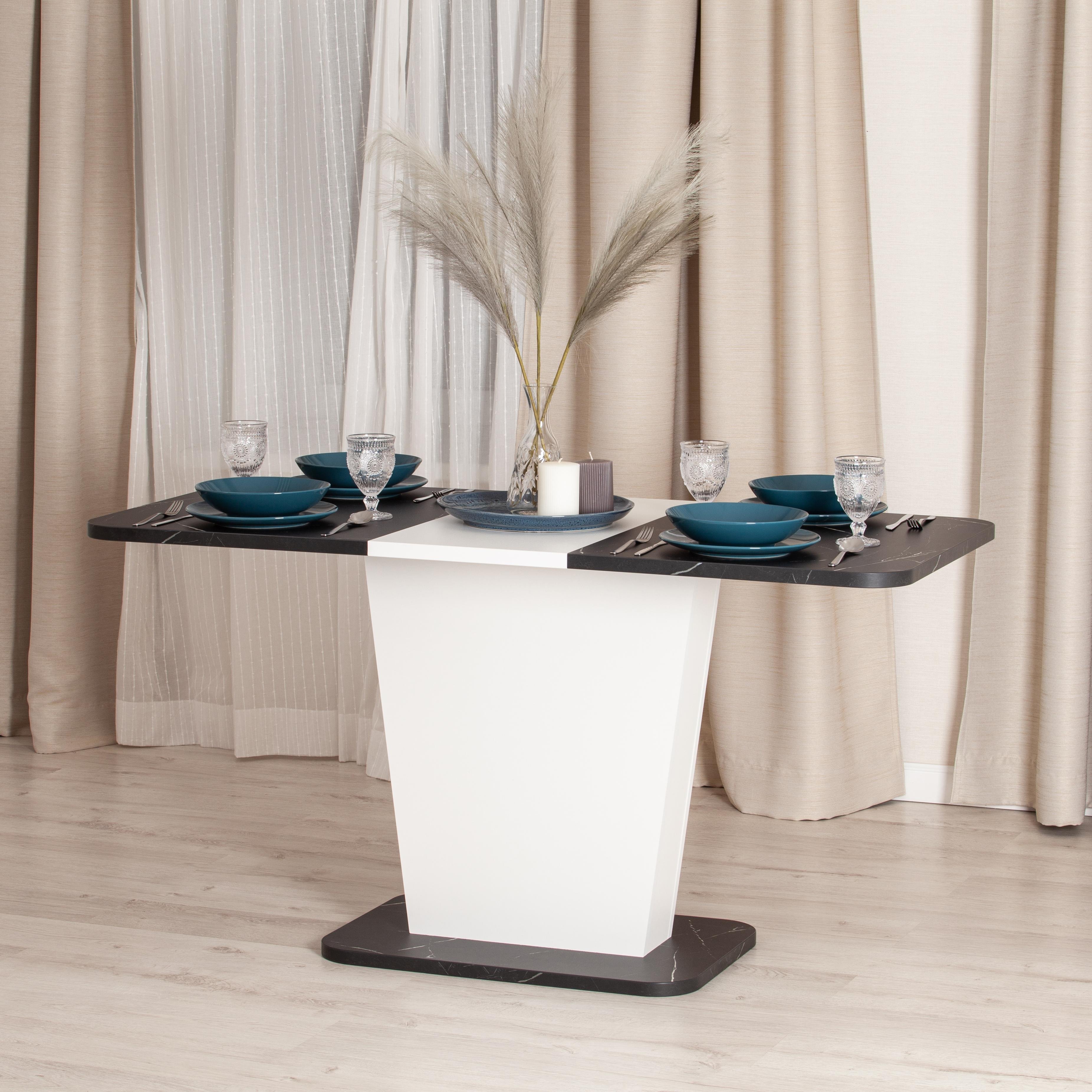 - Отделка: ЛДСП, 110-145x68,6x75,5 см, Мрамор Блэк Роял/Белый