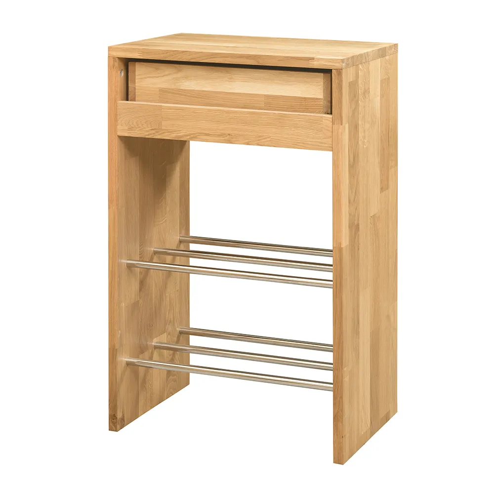 Стильная и удобная тумба для обуви «Терамо» изготавливается из натурального материала – массива дуба. Задняя стенка из фанеры в шпоне дуба. Есть возможность выбрать один из шести цветов отделки – бейц-масло, дуб паркетный, дуб венге, дуб отбеленный, темная вишня или итальянский орех.