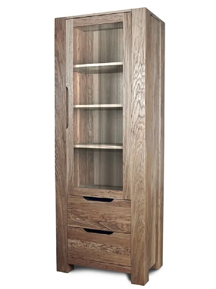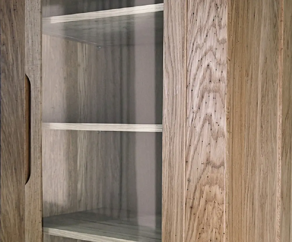 Витрина выполнена из натурального дуба с подчеркнуто выраженной естественной фактурой.